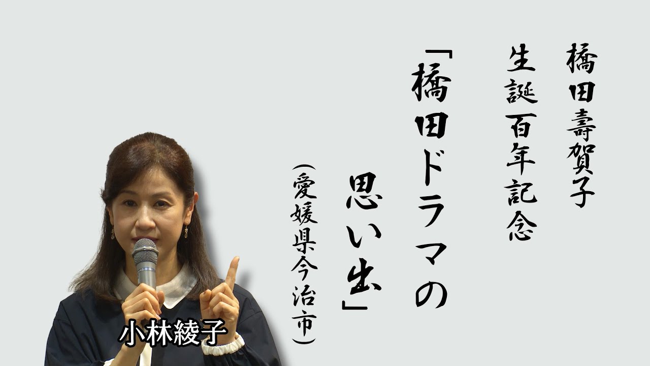 2025年3月20日から4月13日まで、橋田家の菩提寺がある愛媛県今治市のイオンモール今治新都市で開催された「橋田壽賀子生誕100年記念特別展」のメインイベントとして行われた、小林綾子のトークショーをお届けします。小学生だった小林が体験した「おしん」のオーディションと撮影現場での驚きエピソード。「長台詞」に込められた橋田壽賀子の思いを演じ、俳優として学んだことなどを振り返ります。東芝日曜劇場の懐かしいシーンも必見。生誕100年を迎えてさらに輝きを増す橋田作品の魅力を語りつくします。